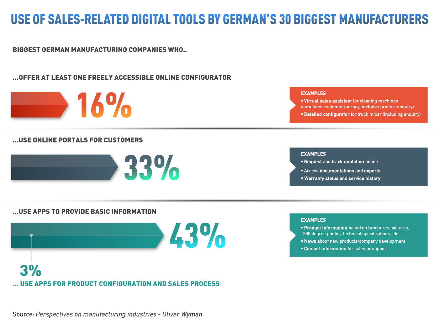 An employee making a purchase on behalf of their company expects a similar user-friendly experience, including rapid, high-quality information and the availability of different product varieties and add-ons. Manufacturers need to empower their customers and provide digital tools enabling them to choose the right product or solution: online product specifications, manuals, fact sheets, tutorials, virtual assistants...